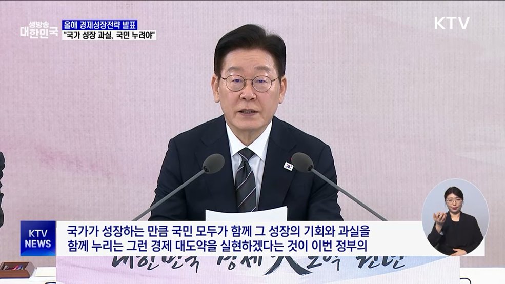 임보라 앵커>이재명 대통령이 올해는 모든 분야에서 성장을 이루는 대도약의 원년이 돼야 한다며 범정부 '경제성장전략'을 발표했습니다.이를 통해 국가가 성장하는 만큼 국민이 함께 과실을 누리는 새로운 성장 패러다임을 실현하겠다고 강조했습니다.최영은 기자입니다.최영은 기자>2026년 경제성장전략보고회 (장소: 9일, 청와대 본관)이재명 대통령이 올해 정부의 경제...