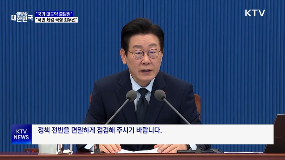 김용민 앵커>이재명 대통령이 올해를 국가 대도약의 출발점이 될 수 있도록 하겠다고 밝혔습니다.대한민국 대도약의 핵심 토대는 국민 모두의 성장이라며, 국민 체감 국정에 최우선 목표를 두고 정책을 점검할 것을 지시했습니다.윤현석 기자의 보도입니다.윤현석 기자>제18차 대통령 주재 수석보좌관회의 (장소: 8일 오후, 청와대)새해 첫 수석보좌관회의를 주재한 이재명...