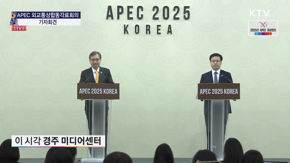 APEC 외교통상합동각료회의 기자회견조현 / 외교부 장관여한구 / 산업통상부 통상교섭본부장(장소: 경주 미디어센터)
