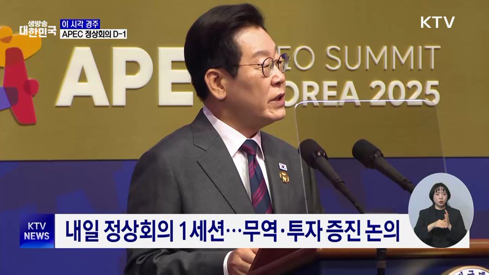 임보라 앵커>경주 APEC 정상회의가 내일 개막합니다.오늘은 최종 점검을 위한 합동각료회의가 열리는데요.경주 현장을 연결해보겠습니다.문기혁, 최영은 기자!문기혁 기자 / 경주 국제미디어센터>네, 경주 국제미디어센터입니다.아시아태평양 경제협력체, APEC 정상회의가 내일(31일) 개막합니다.정상회의를 하루 앞두고 이곳 분위기는 점차 고조되고 있습니다.저희가 ...