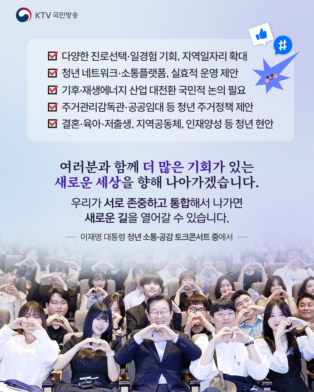이 대통령은 “청년세대 전체가 일종의 피해 계층이라고 생각한다”라고 밝혔는데요. 기성세대에 비해 구조적으로 매우 어려운 상황이며, “기회 총량이 부족해 경쟁이 너무 극렬화됐다”라고 말했습니다.