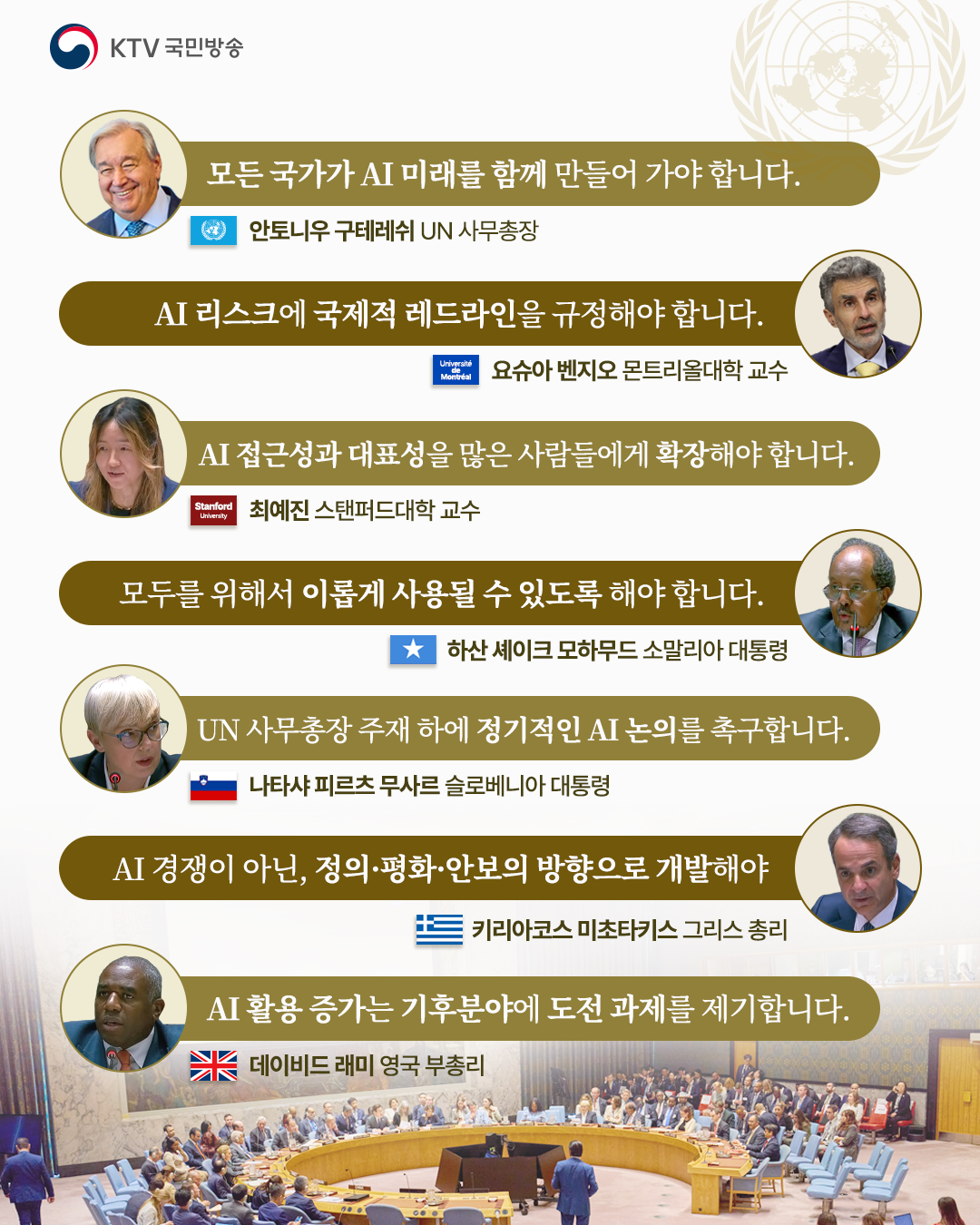 “안보리는 진화하는 위협에 대처하며 국제사회의 방향과 비전을 제시해 왔으며, 이제 AI 시대에 변화한 안보 환경을 분석하고 공동의 대응 방안을 찾아내야한다”라고 강조했습니다.
