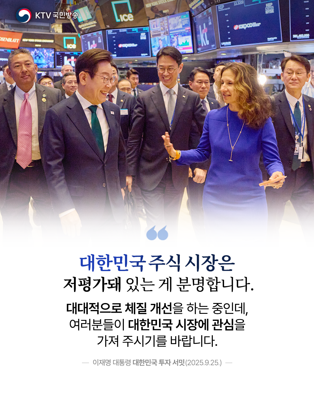 이 대통령은 한국 주식시장이 저평가된 원인들을 제거하고, 대대적인 체질 개선을 하겠다고 밝혔는데요.