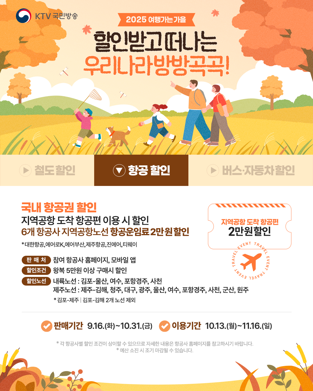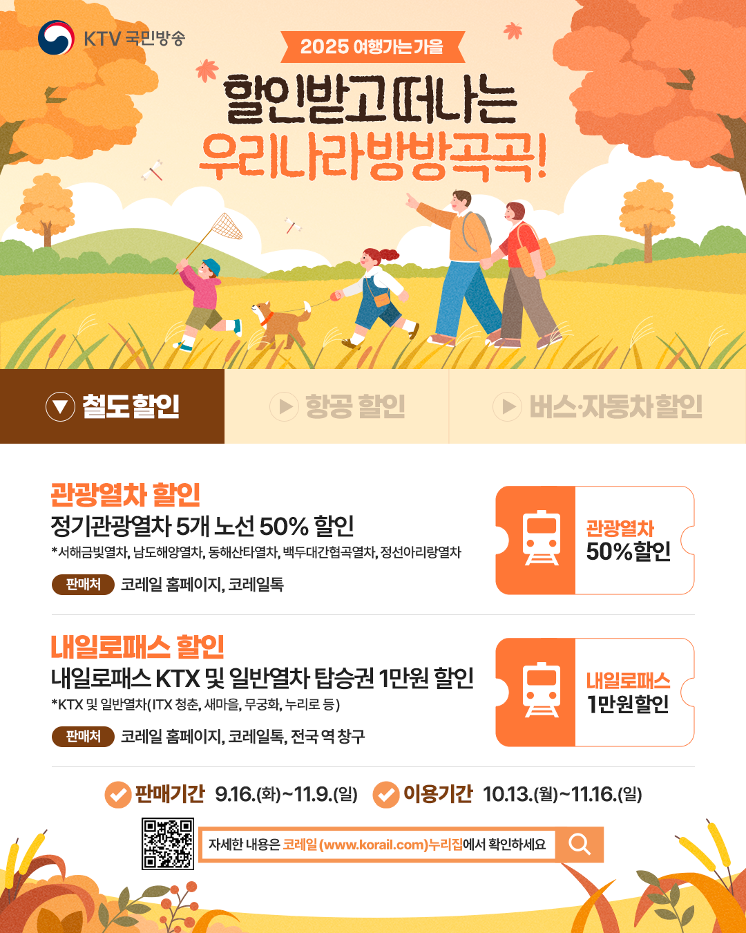 국내여행을 통해 지역경제를 살리고, 교통 할인 혜택으로 더 가볍게 떠나세요!