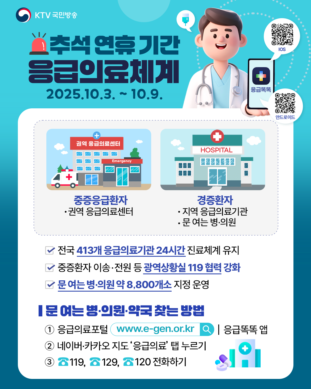 경증환자는 문 여는 동네 병·의원이나 작은 응급실(지역응급의료기관)을 방문해 진료를 받으면 됩니다.