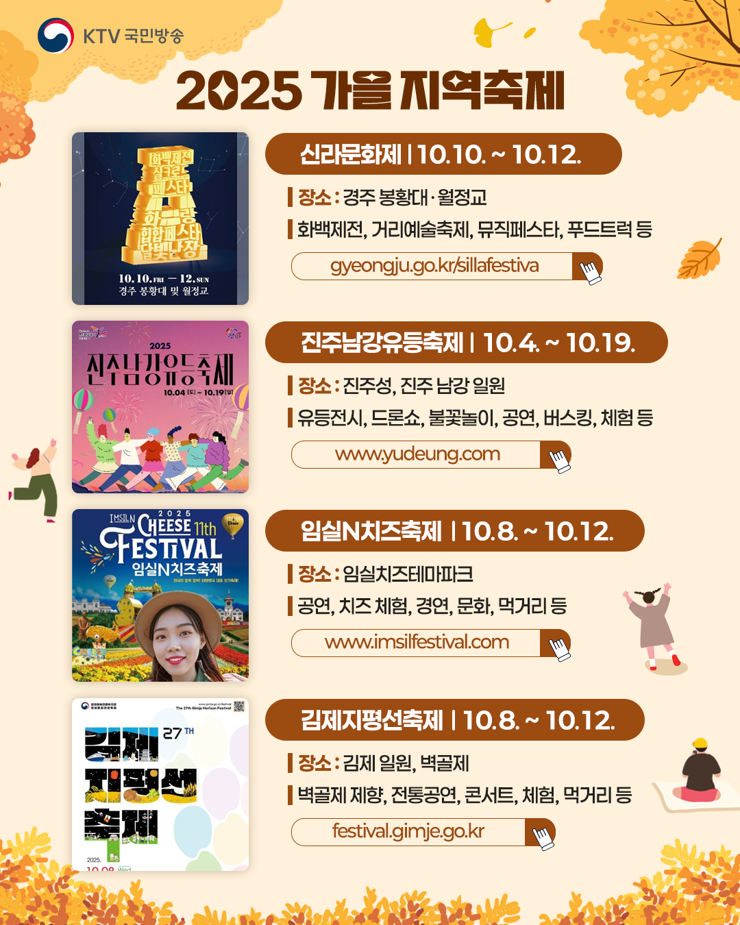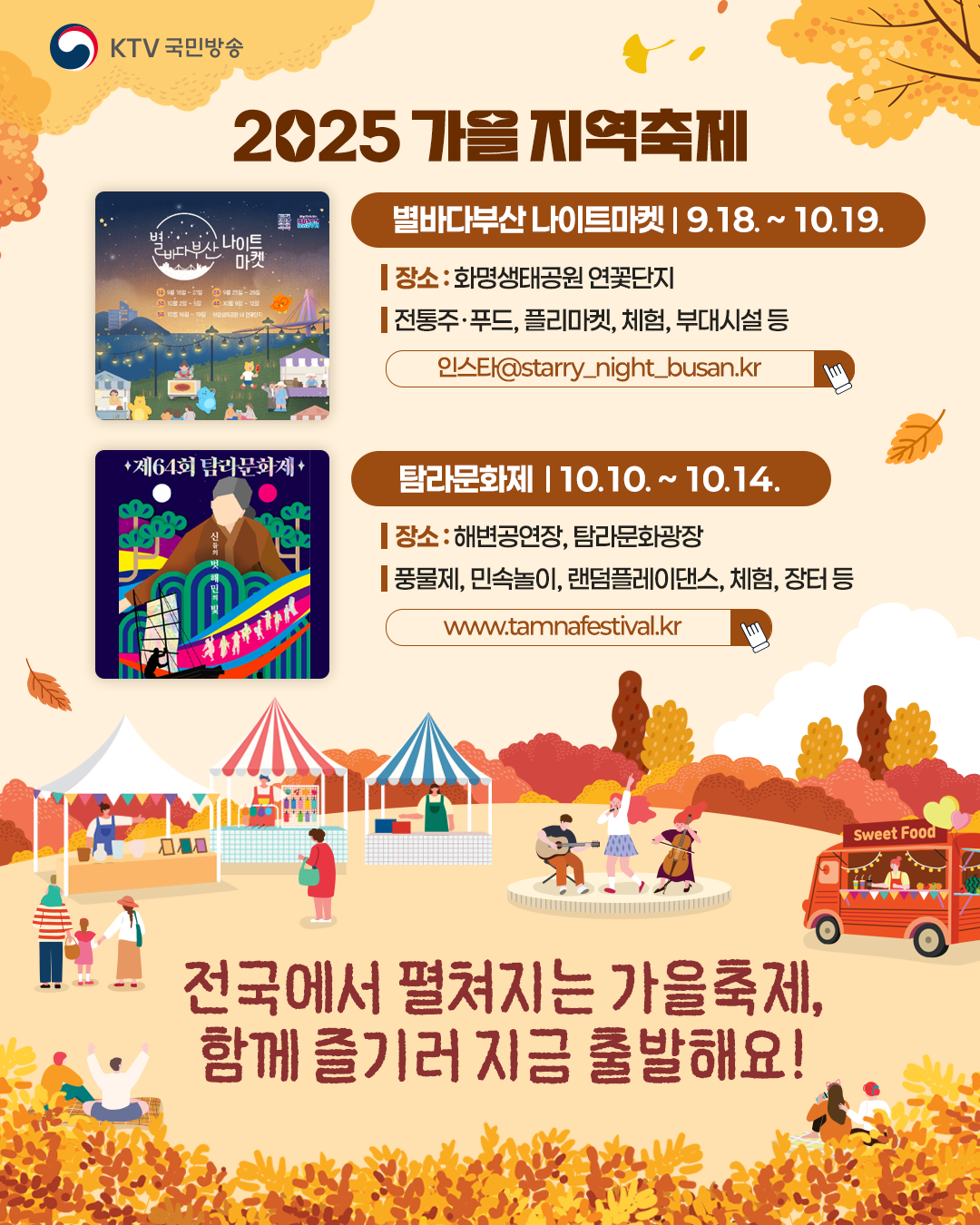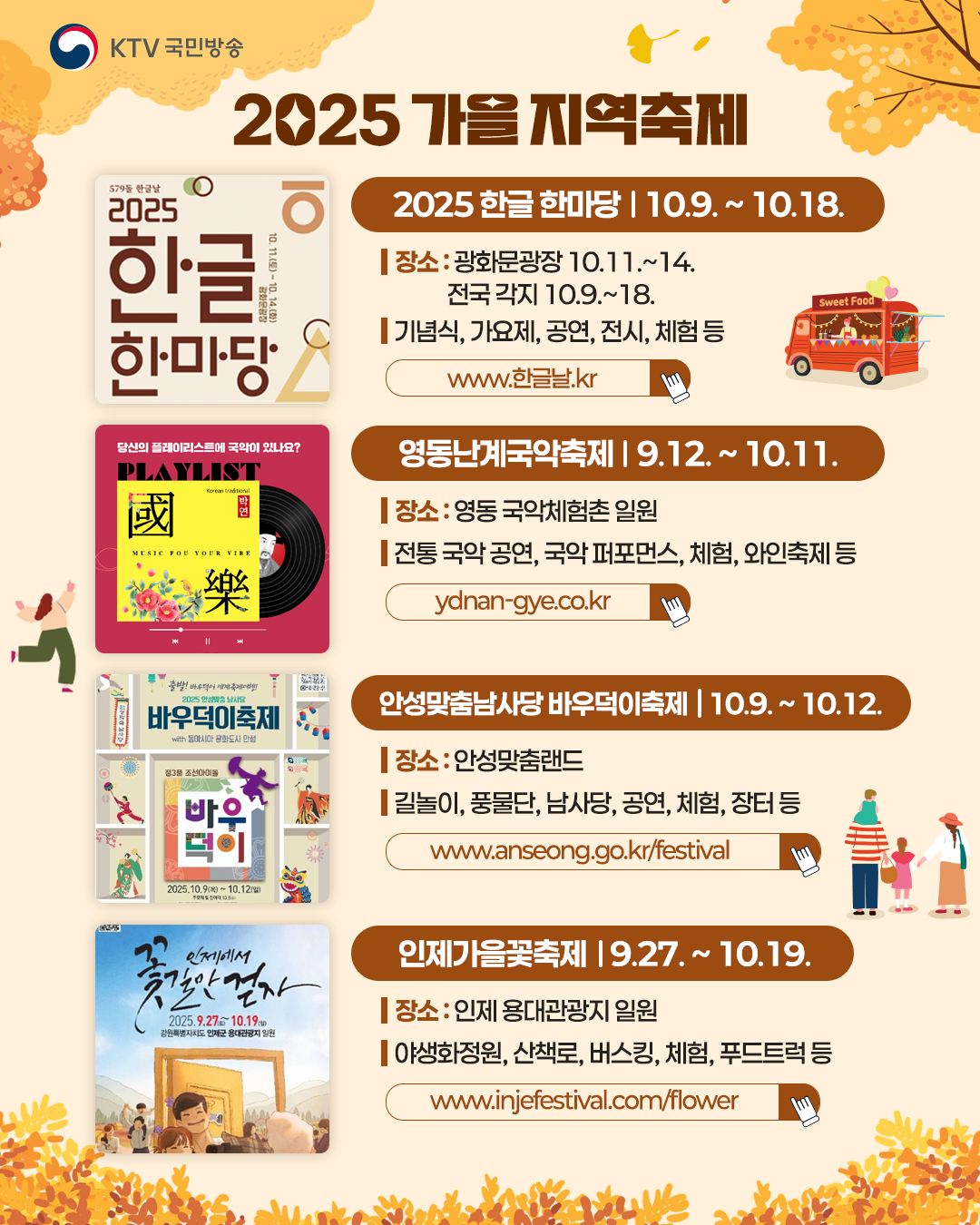 가을 감성, 가을꽃, 가을 먹거리 가~득한 축제의 현장이 대한민국 방방곡곡에서 펼쳐지고 있습니다.