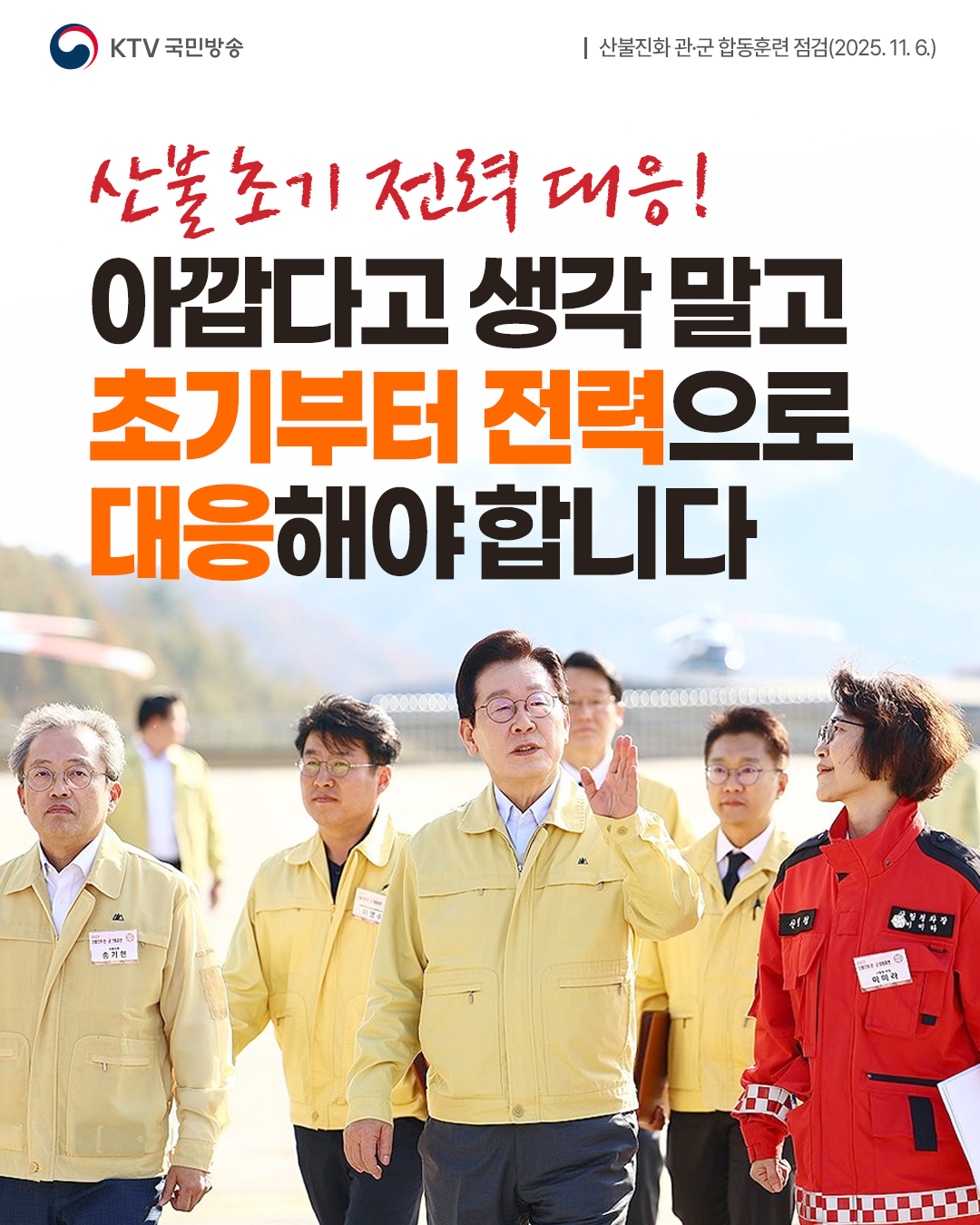 이 대통령은 훈련에 참여한 진화대원들을 격려하고, “정부도 예산과 인력, 필요한 준비를 하는 데 있어서 부족함이 없도록 하겠다”라고 밝혔습니다.