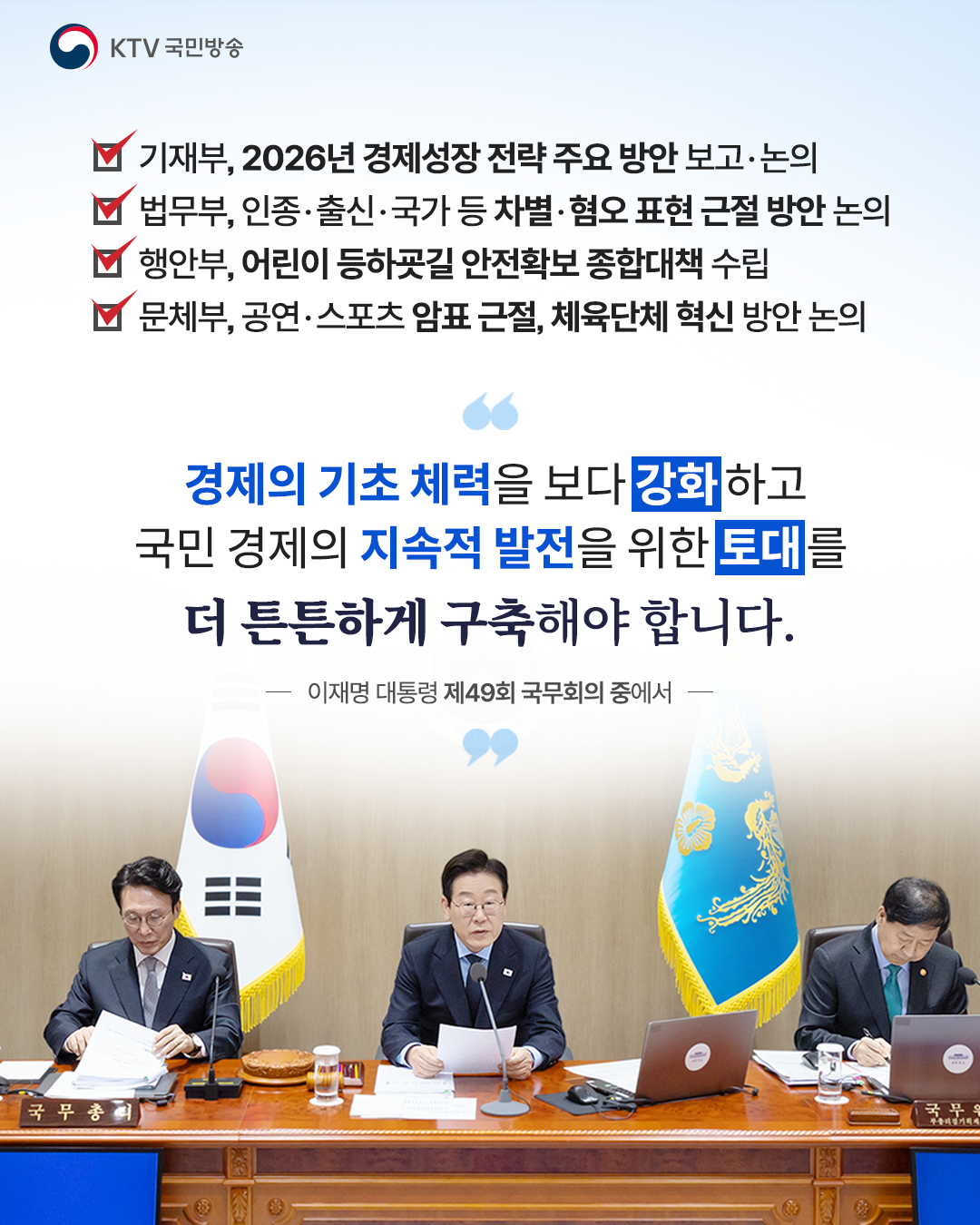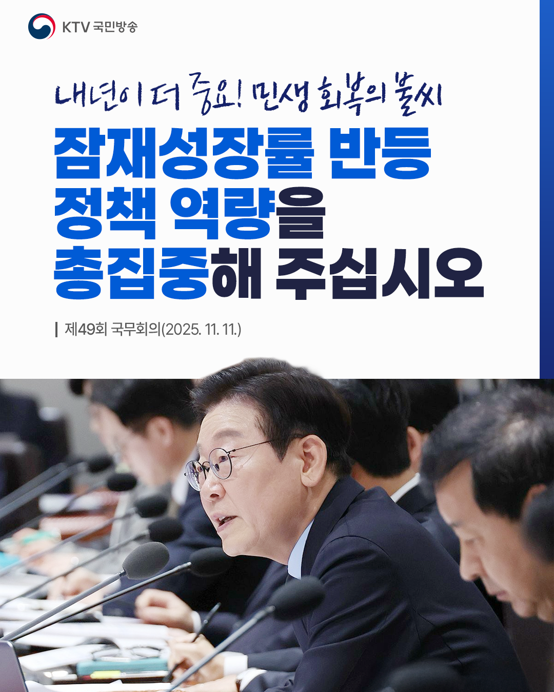 이재명 대통령은 함께한 국무위원들에게 “경제·민생 회복의 불씨를 더욱 키워서 잠재성장률을 반등시킬 수 있도록 정책적 역량을 총집중해 달라”고 강조했는데요.