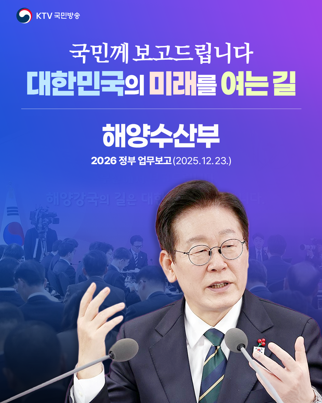 이재명 대통령은 12월 23일 부산 동구 해양수산부 청사에서 열린 정부 업무보고에 참석하였습니다.