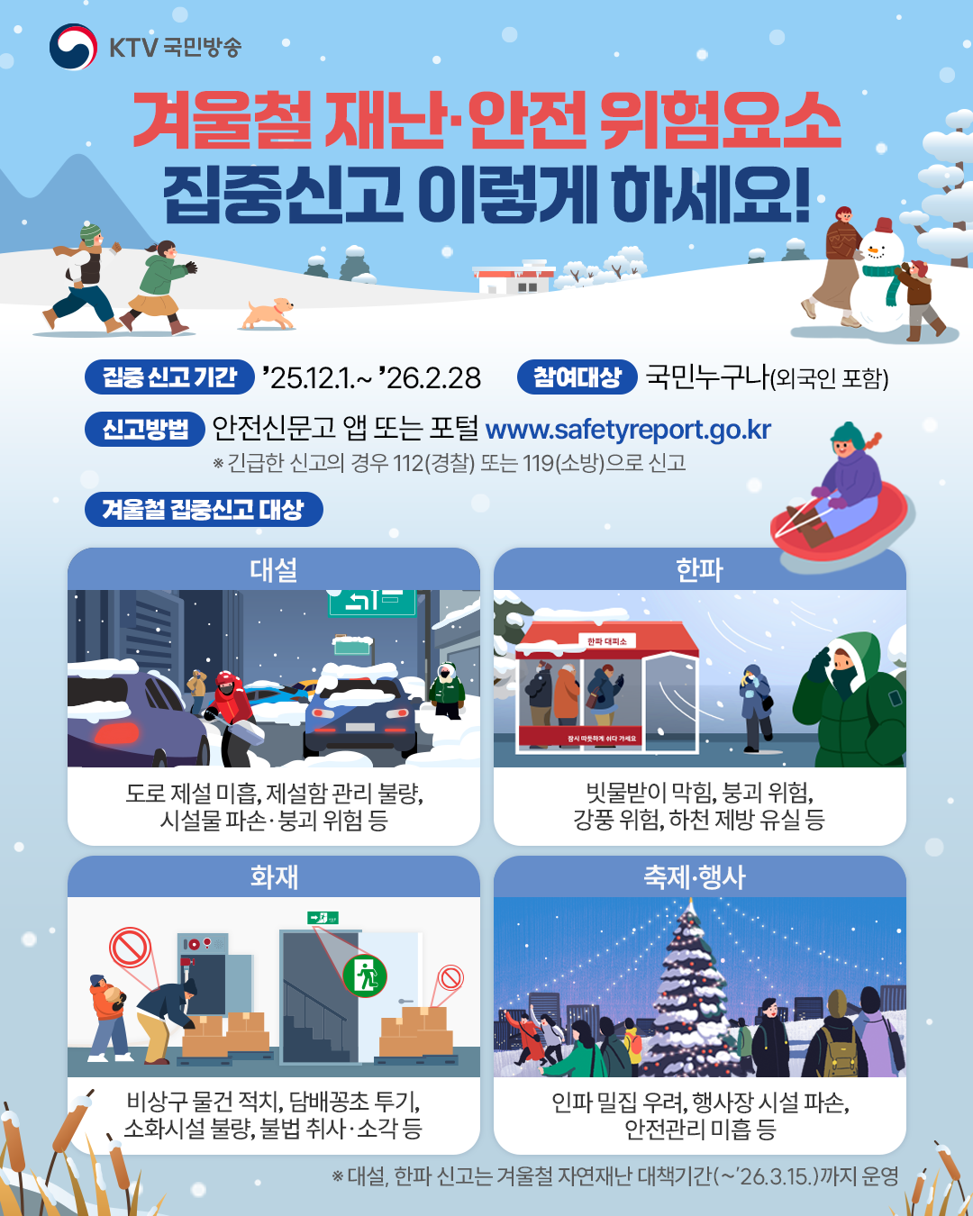 겨울철 재난·안전위험요소 집중신고 기간을 운영합니다.