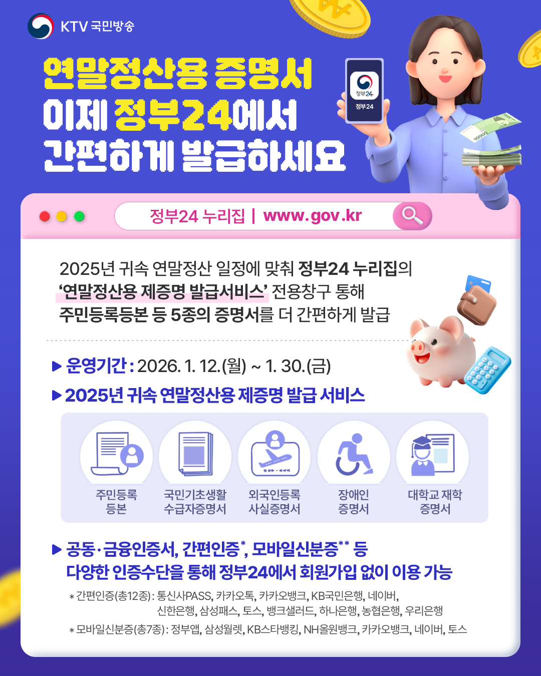 ‘연말정산용 제증명 발급서비스’ 전용창구 통해 주민등록등본 등 5종의 증명서를