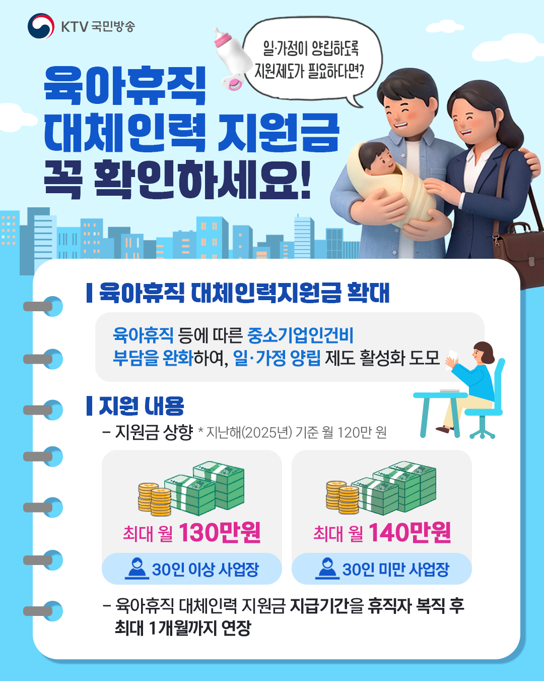 올해부터 육아휴직 대체인력 지원금이 확대됐어요!