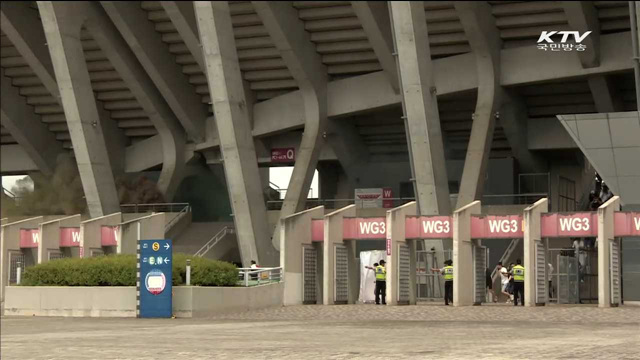 지구촌 대학생들의 최대 축제인 광주유니버시아드대회가 17일 앞으로 다가왔습니다. 국내외 선수들이 찾는 만큼 경호와 안전이 무엇보다 중요하겠죠. 광주월드컵경기장에서는 테러에 대비한 훈련이 펼쳐졌는데요. 신국진 기자가 다녀왔습니다. 관람객으로 위장한 국제테러조직원이 주경기장에 폭탄 테러를 일으킵니다. 현장음> "관람객으로 위장한 테러범들이 경기장 곳...